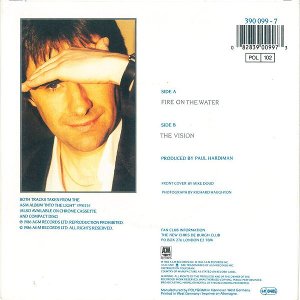 Chris de Burgh – Fire On The Water 45 lik Plak