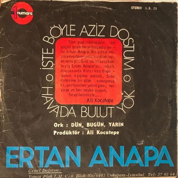 Ertan Anapa, Dün Bugün Yarın – Havada Bulut Yok 45lik Plak