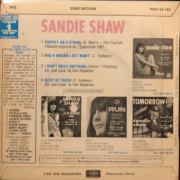 Sandie Shaw – Puppet On A String 45lik EP (Grand Prix De L’Eurovision 1967)