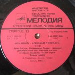 PLAK: G+ KAPAK: G+ FORMAT: LP ÜLKE: SSCB YAYINLANMA TARİHİ: 1989 LABEL: Melodiya KAT. NO: С30 25069 005