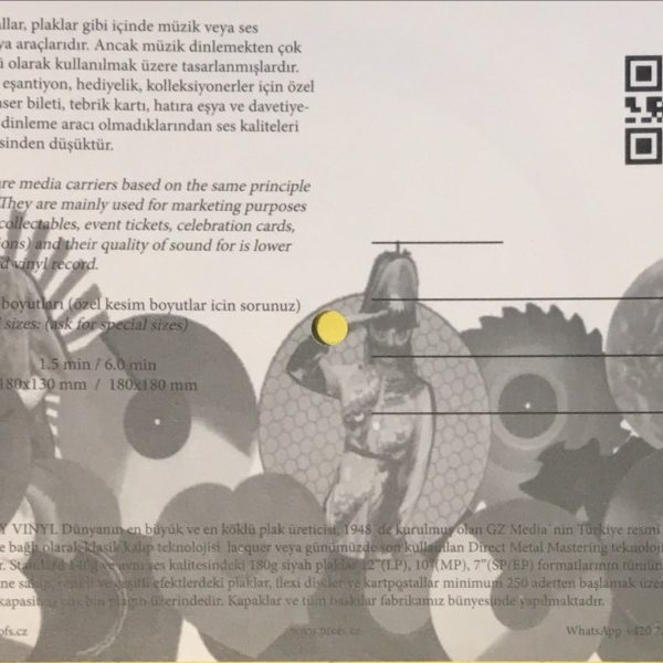 MEDYA: Mint FORMAT: 6'', Vinyl Kartpostal ÜLKE: Çek Cumhuriyet YAYINLANMA TARİHİ: 2019 LABEL: Prof Sny Records