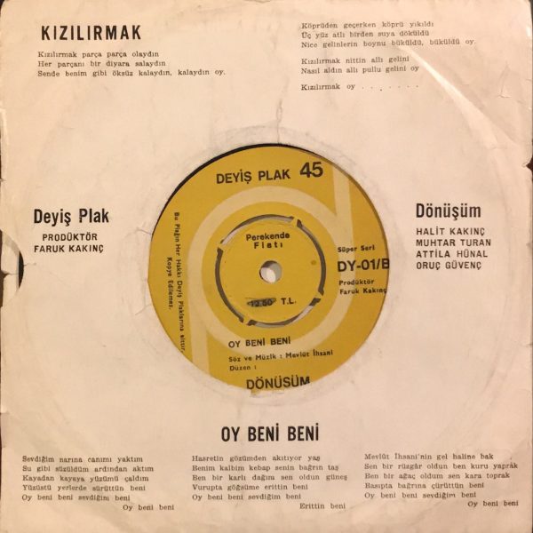 Dönüşüm ‎– Kızılırmak / Oy Beni Beni 45lik Plak