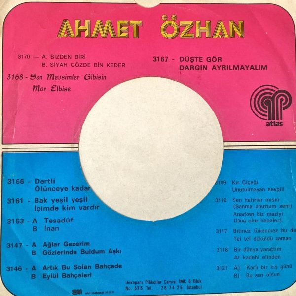 PLAK: VG KAPAK: VG FORMAT: 7'' 45' lik ÜLKE: Türkiye LABEL: Atlas KAT. NO: 3174