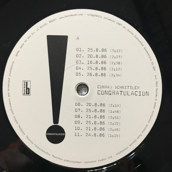 Conrad Schnitzler – Congratulacion LP Plak