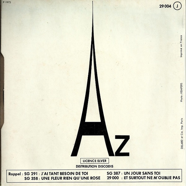 PLAK: VG KAPAK: VG+ FORMAT: 45lik ÜLKE: Fransa YAYINLANMA TARİHİ: 1962 LABEL: Vargal KAT. NO:  G-317