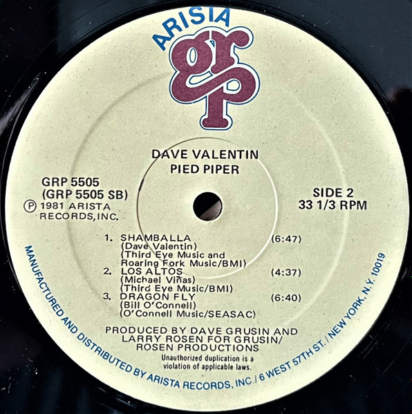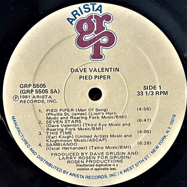 Dave Valentin – Pied Piper LP Plak