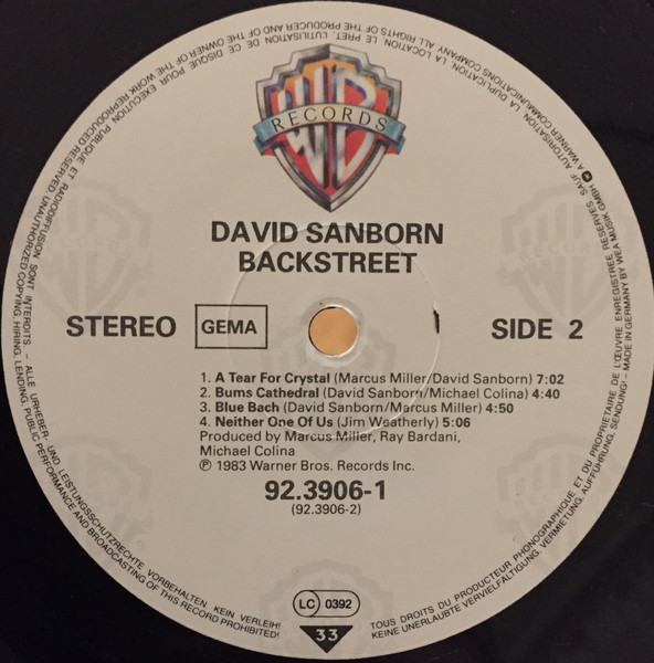 David Sanborn – Backstreet LP Plak