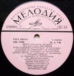 PLAK: G+ KAPAK: G+ FORMAT: LP ÜLKE: SSCB YAYINLANMA TARİHİ: 1989 LABEL: Melodiya KAT. NO: С30 25069 005