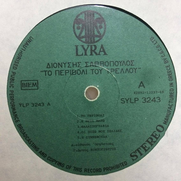 Ana Sayfa LP Yabancı Plak Yunanca Dionýsios Savvópoulos – To Perivóli Tou Trelloú LP Plak