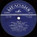 PLAK: EX KAPAK: EX FORMAT: LP ÜLKE: SSCB YAYINLANMA TARİHİ: 1985 LABEL: Melodiya KAT. NO: М60 47077 003