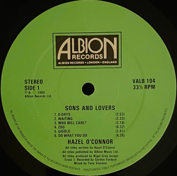 Hazel O’Connor – Sons And Lovers LP Plak