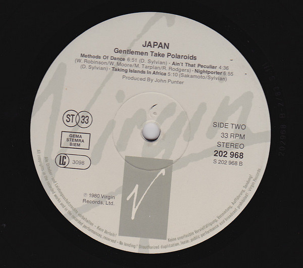 | A1 | Gentlemen Take Polaroids | 7:05 | |