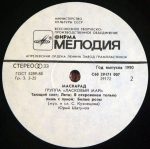 PLAK: EX KAPAK: EX FORMAT: LP ÜLKE: SSCB YAYINLANMA TARİHİ: 1985 LABEL: Melodiya KAT. NO: М60 47077 003