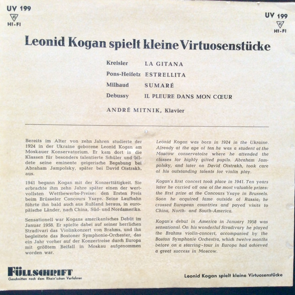 Leonid Kogan – Spielt kleine Virtuosenstücke 45lik Plak
