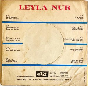 PLAK: VG+ KAPAK: G+ FORMAT: 7'' 45'lik ÜLKE: Türkiye LABEL: Elif KAT. NO: E 91