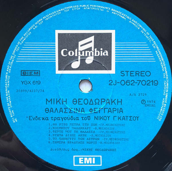 PLAK: VG+ KAPAK: VG+ FORMAT: LP ÜLKE: Yunanistan YAYINLANMA TARİHİ: 1973 LABEL: Columbia KAT. NO:  2J 054-70004