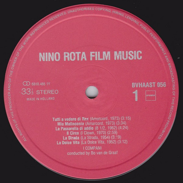 Ana Sayfa LP Yabancı Plak Soundtrack / Library Nino Rota – I Compani – Music To The Films Of Federico Fellini Composed By Nino Rota Played By I Compani LP Plak
