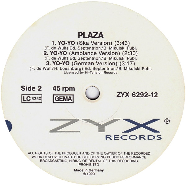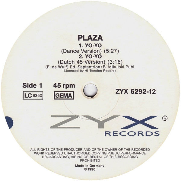 Ana Sayfa 12" MAXI SINGLE House / Techno Plaza – Yo-Yo (Ten Years Ago) 12″ Maxi Single Plak (Early House)