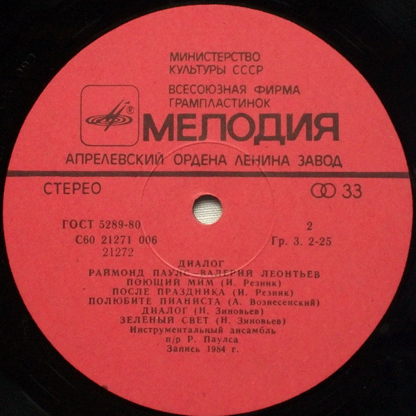 Ana Sayfa LP Yabancı Plak Doğu Avrupa / Sovyet Birliği Raymond Pauls – Valeriy Leontiev – Dialog LP Plak
