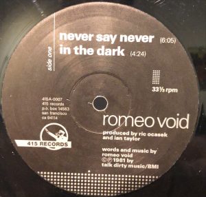 Romeo Void ‎– Never Say Never Maxi Single Plak