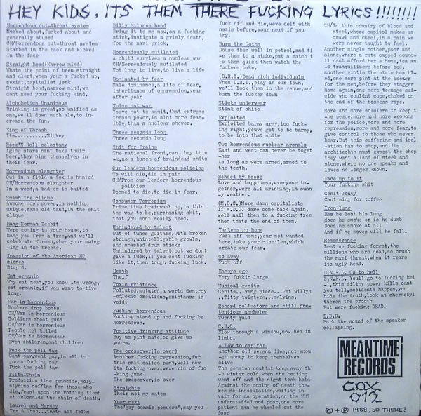 PLAK: VG+ KAPAK: VG+ FORMAT: LP ÜLKE: Avrupa YAYINLANMA TARİHİ: 1984 LABEL: Animal Records KAT. NO: 206 445