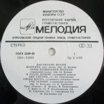 PLAK: EX KAPAK: EX FORMAT: LP ÜLKE: SSCB YAYINLANMA TARİHİ: 1978 LABEL: Melodiya KAT. NO: С30-10281