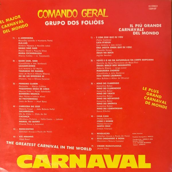 Grupo Dos Foliões – Folia 78 Comando Geral LP Plak
