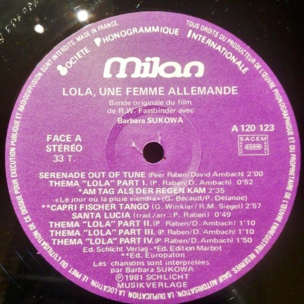 Peer Raben – Lola, Une Femme Allemande LP Plak